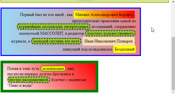 How is this possible, since we specified flex-grow: 1; there? The thing is, flex-grow tries to distribute the empty space in the blocks without taking into account the space occupied by the content.